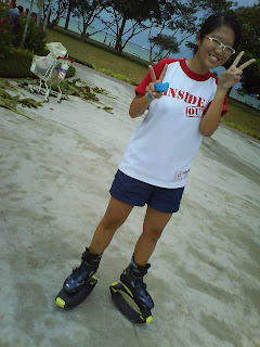 pics below.. look at the shoe tt i'm wearing... it's not a roller skate... is like can bounce de.... was fun lahx... good exercise.. it keeps u running... bt i;m having blisters at weird places... hahax...